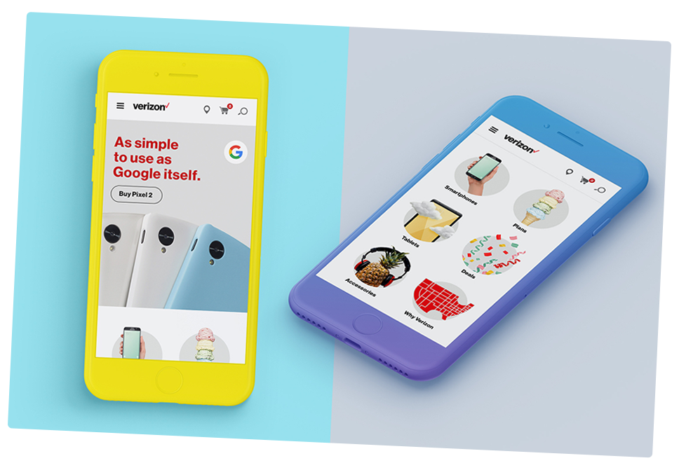 When Verizon tasked us WHILE @ AKQA with a re-brand in 2015, I was part of a three-person team that overhauled 2,000+ non-responsive web pages to create new assets and restructure content, all while making sure they got an accessible and modern digital styleguide to go with it. All in all, I was there to champion less copy, more space, clear hierarchy, and obvious calls to actions.