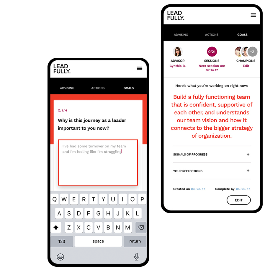 IN 2017 I was part of a small product team at SYPartners that created a leadership development program called Leadfully, a digital learning system created based on the knowledge from 20+ years of SYP leadership capabilities. It aimed at enabling behavior change through 1:1 advising and guided practical application such as, advice, insights, reminders, or action items.